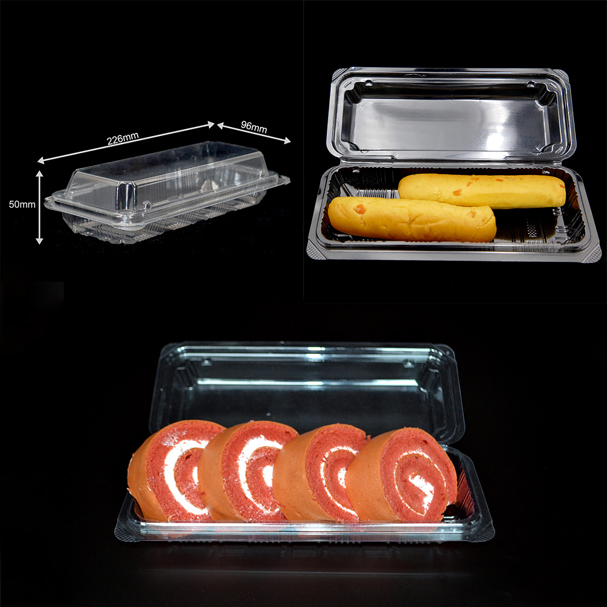 Voici un modèle long de notre série de boîtes alimentaires jetables à clapet en plastique, un merveilleux ajout à vos offres commerciales de gros.Avec un design de verrouillage à charnière, ce La boîte alimentaire à clapet en plastique jetable transparent PET est largement utilisée pour l'emballage de boulangerie.Des emballages pour sushis sont également disponibles.